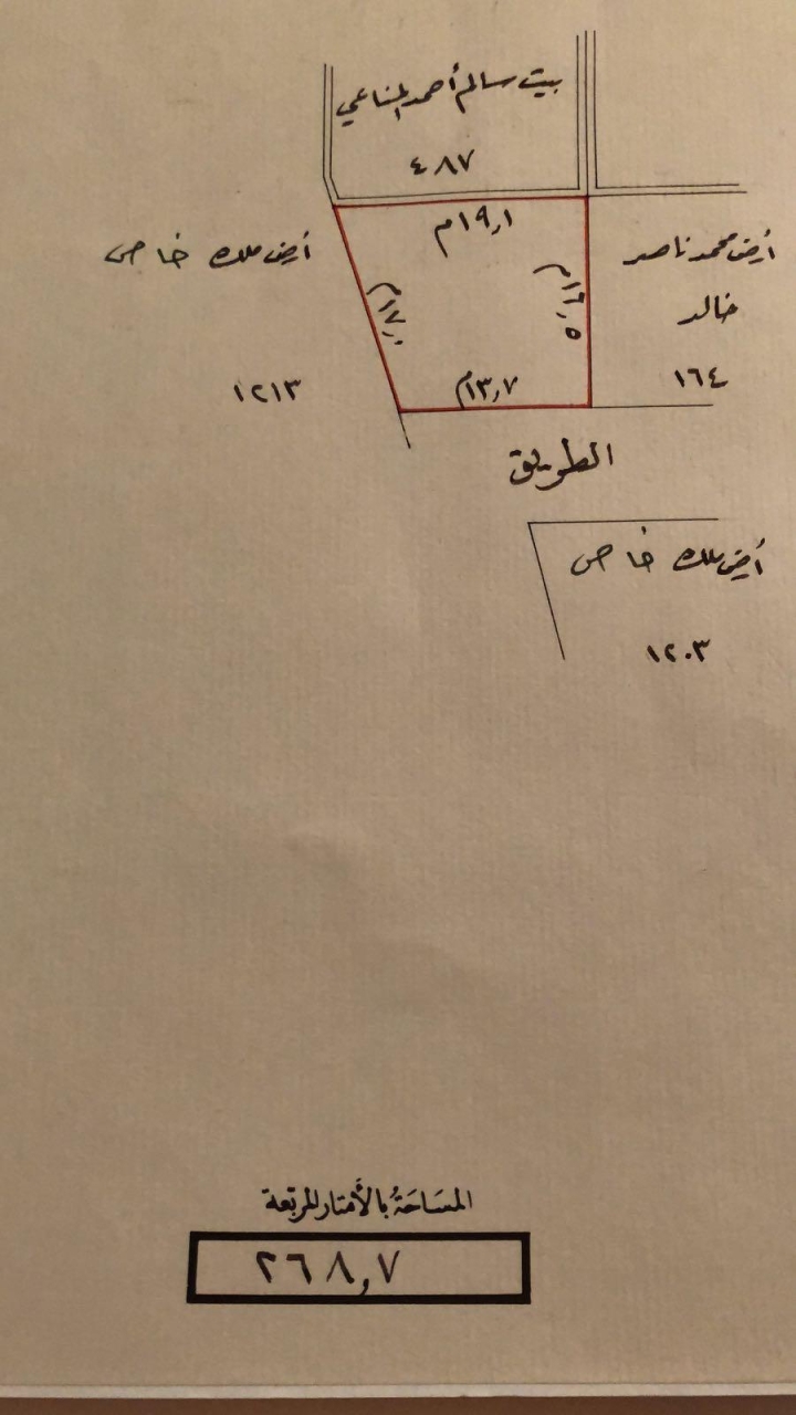 268.7 المساحة بالمتر المكعب