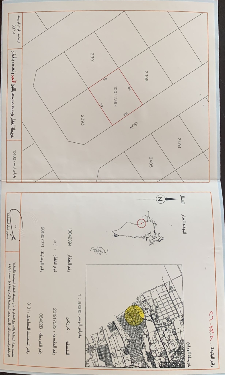 أرض سكنية للبيع في كرزكان بتصنيف RA (مناطق السكن الخاص - أ). مساحة أرض 307.4 متر مربع, بسعر 26.60د.ب لكل قدم مربع , السعر الإجمالي 88,015.410د.ب