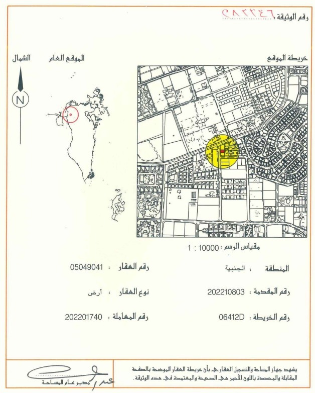 Residential Land for Sale in Janabiya with a classification of RA (RA Private Residential Area - A). The Land size is 392.5 SQM, priced at 35.00BHD per SQFT , with a total price of 147,870.450BHD